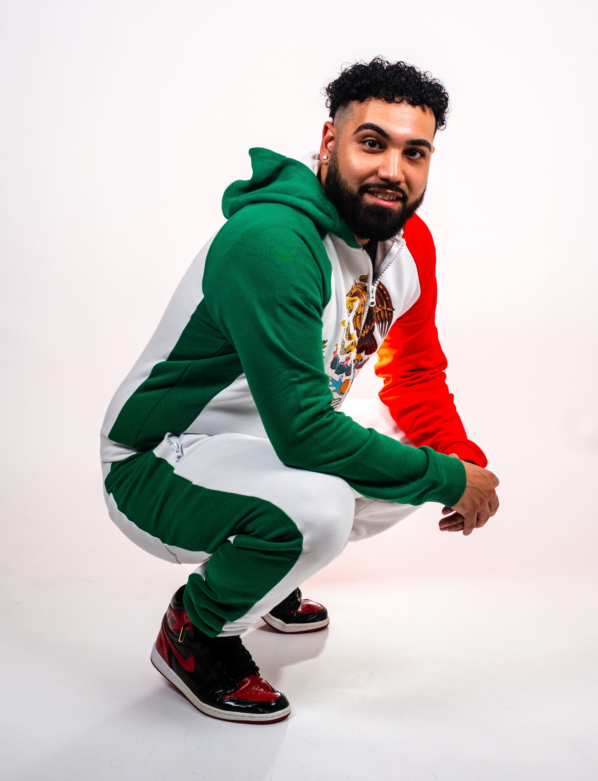 Annie is 5'5 wearing a Small. Ralph is 5'10 wearing an X-Large.